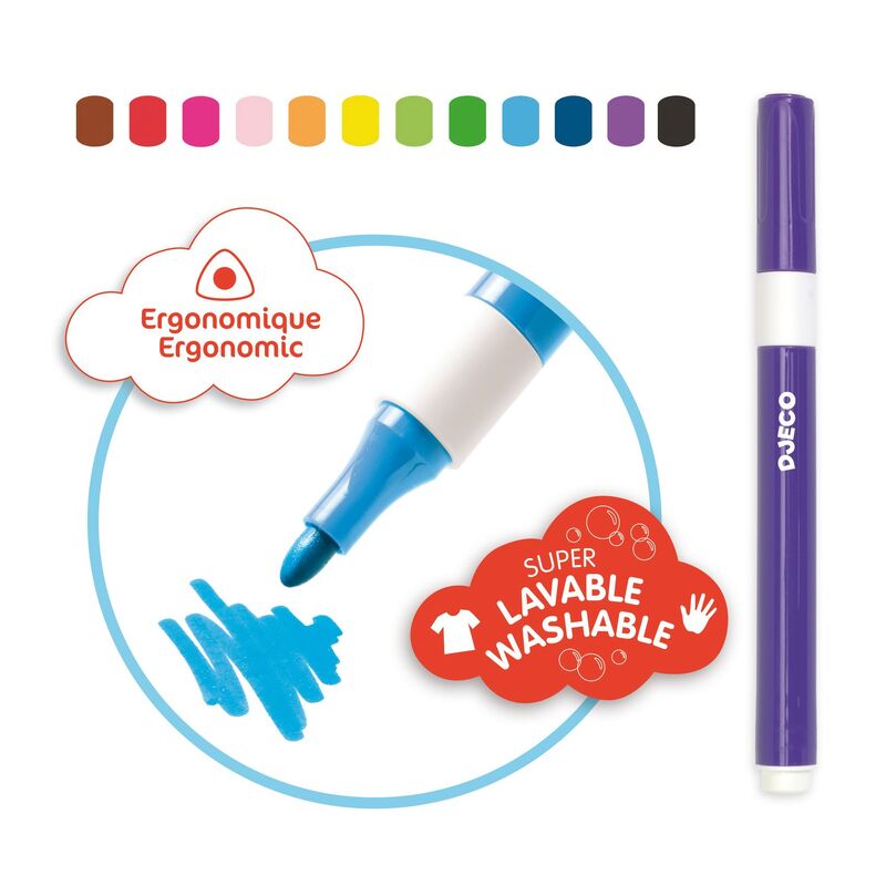 Enquire about this productA compact set of 12 super washable markers designed for everyday drawing and colouring. With vibrant colours and an easy grip shape, they are well suited to young children from age 3.