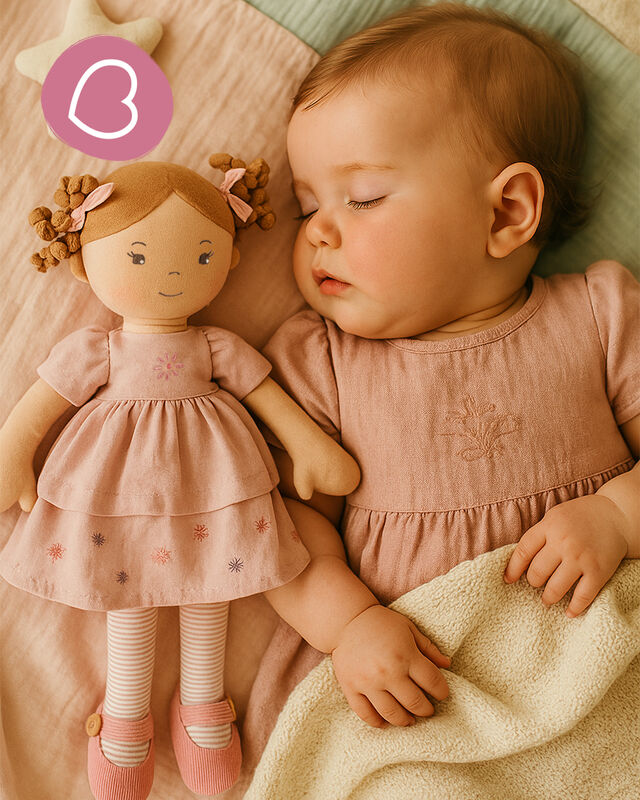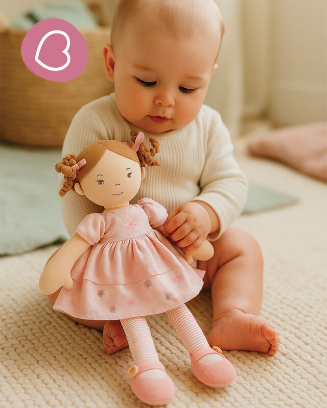Enquire about this productPretty in pink Ameila is a 42cm doll dressed in her favourite linen dress