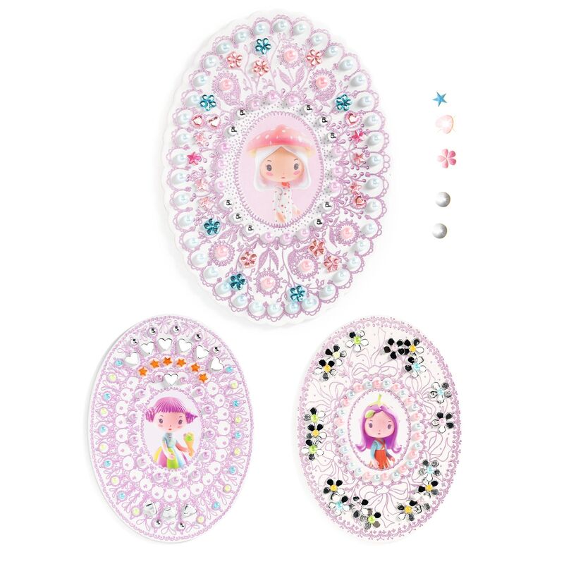 Enquire about this productA decorative collage activity where children create embellished medallions using gems, beads, and shiny mosaics. Designed for focused creative play and fine motor development from age 6.