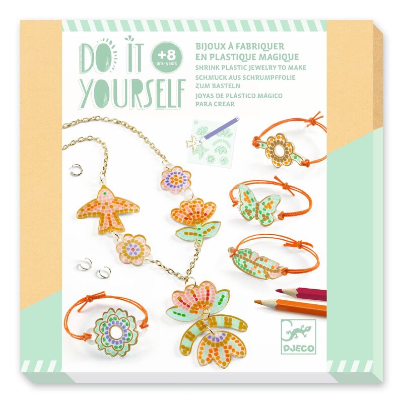 Enquire about this productA shrink plastic jewellery kit where children create a delicate necklace and matching bracelets. Colour, shrink with adult help, then assemble wearable designs from age 8.