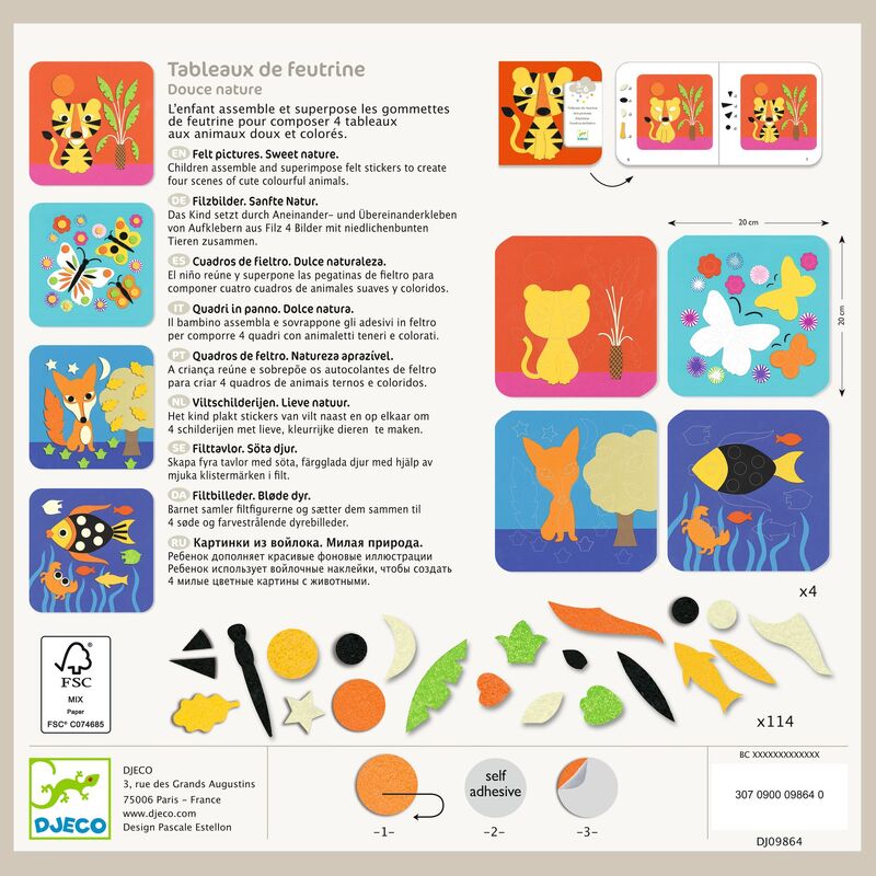 Nature felt pictures are created with the pre-cut adhesive backed pieces of felt. A manual activity that develops childrens dexterity and creativity.