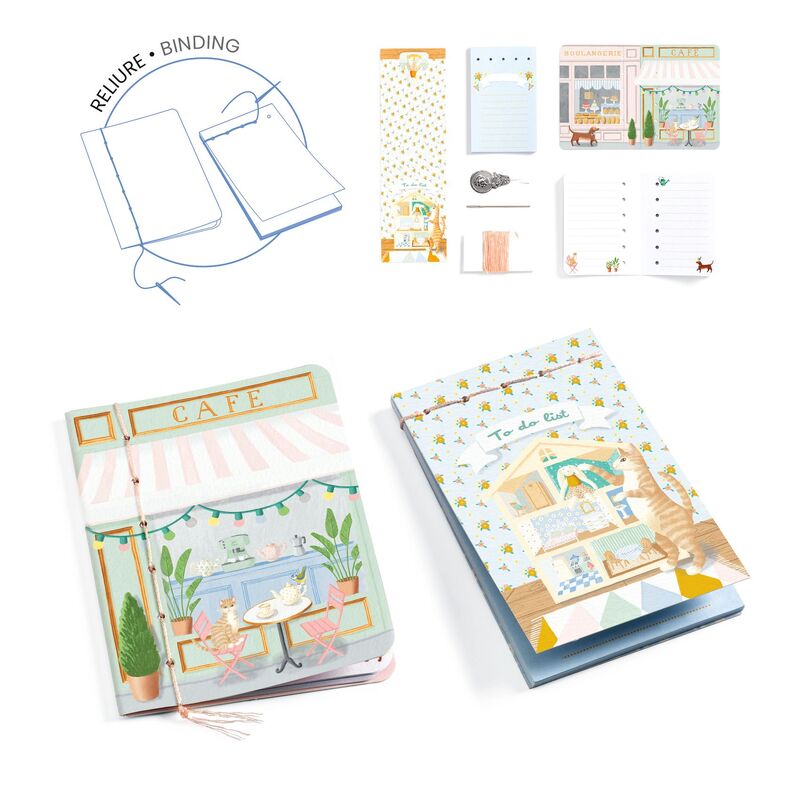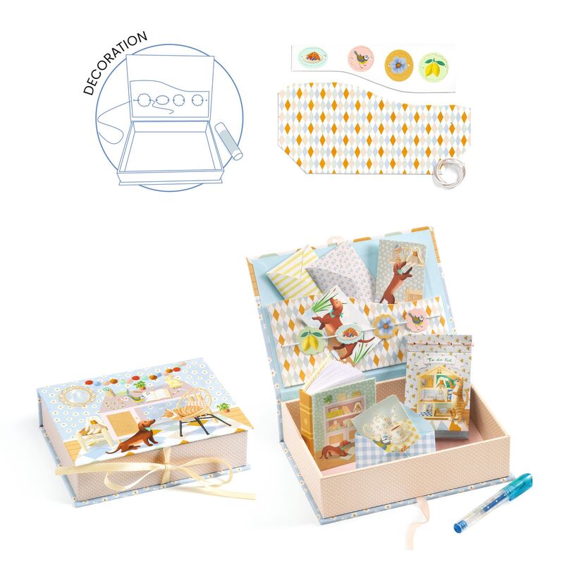 A complete mini stationery activity kit for children aged 7 years and up. Children make and decorate a small storage box, bind mini notebooks and a list pad, create a mini book, and assemble bookmarks and paper clips with decorative elements. The kit includes the tools and materials needed for each activity, with a step by step instruction booklet to guide folding, gluing, assembling, and simple binding. These projects build fine motor skills, patience, and attention to detail, while giving children finished stationery they can use, share, or gift.