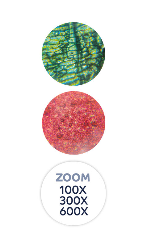 An instruction sheet with colorful illustrations is included. This microscope comes with a CR2032 battery for immediate use. Discover the wonders of the microscopic world!