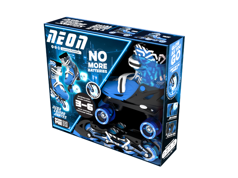 The Yvolution Neon Combo Skates are designed for active kids who want versatility in their skates. These combo skates allow children to easily switch between inline and quad skates, with adjustable sizing to ensure comfort and safety. The light-up wheels add extra fun without the need for batteries, and the durable polyurethane wheels provide excellent performance.