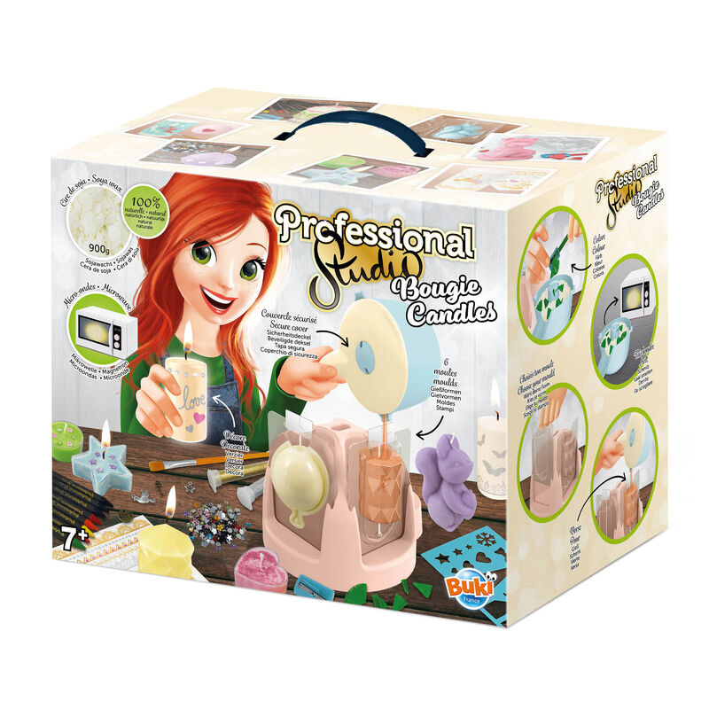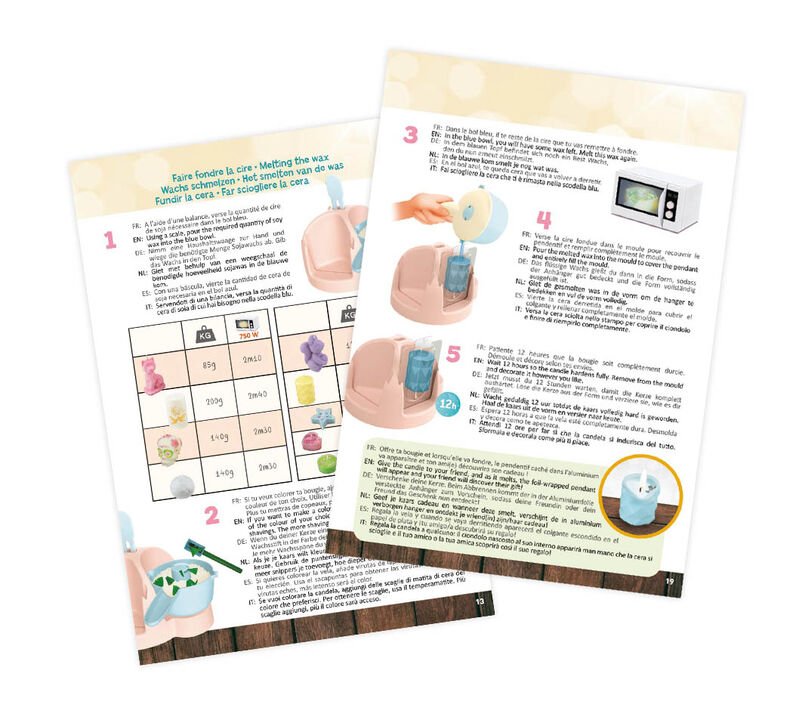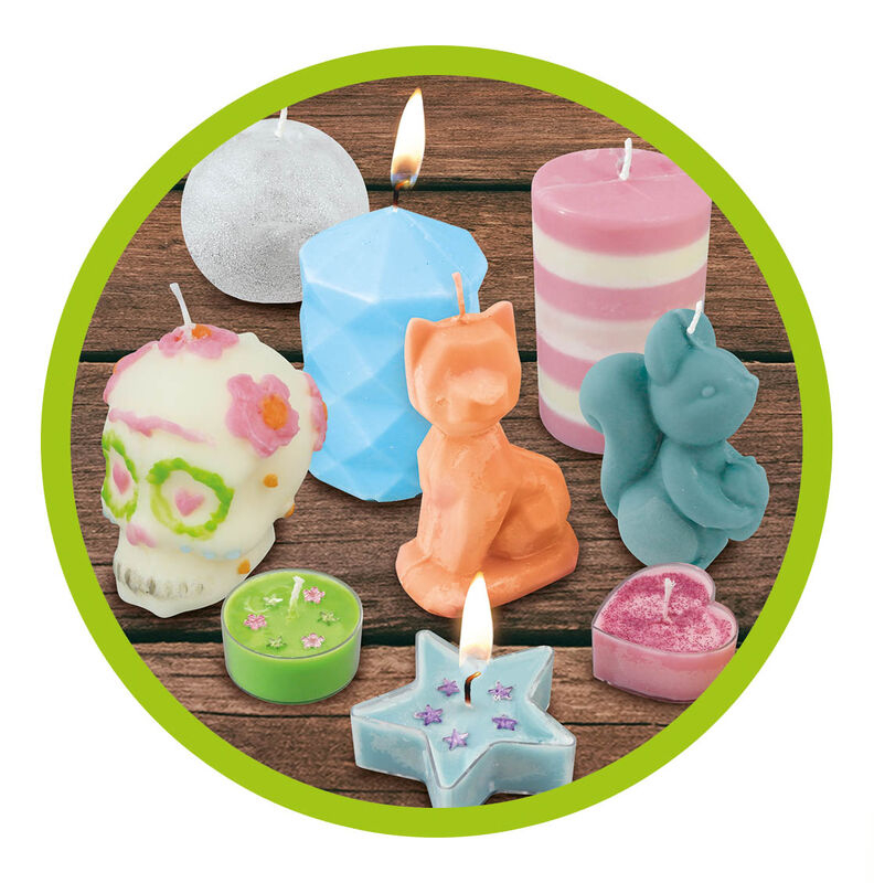 This complete studio set includes a safe melting container for the microwave, multiple moulds and cutters, soya wax and cotton wicks. Add colour, glitter and trims, or hide a small pendant for a special gift. Clear illustrated instructions guide each step.