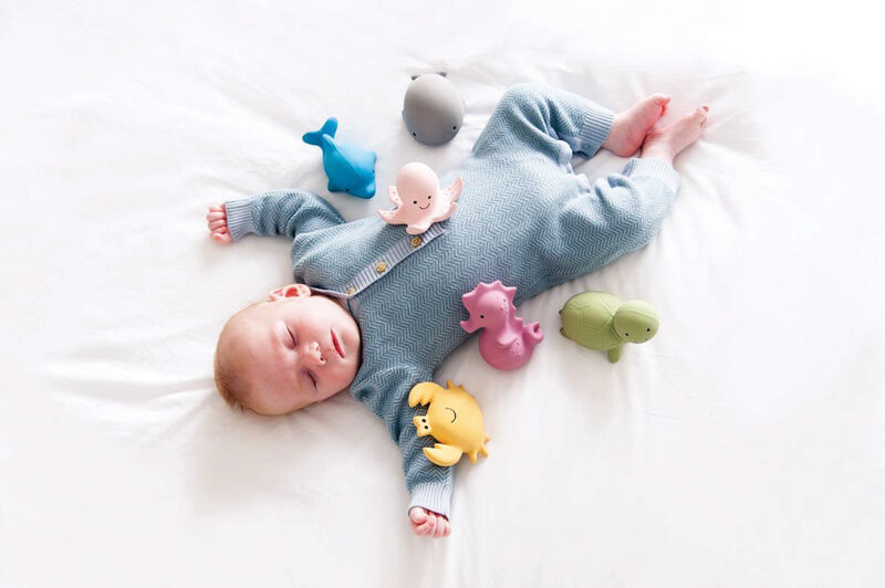 Made from sustainable natural rubber from the hevea tree grown in Sri Lanka, My First Ocean Buddies are biodegradable and durable.