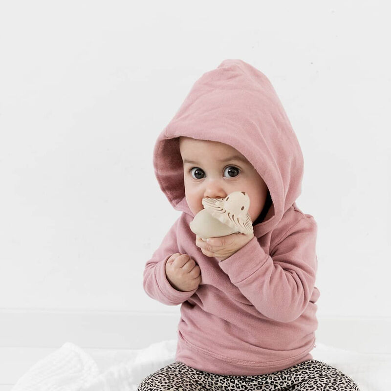 An adorable all rubber lion teether that is great for little hands to grab and squeeze. Features a little bell that rattles inside to delight and entertains little ones.