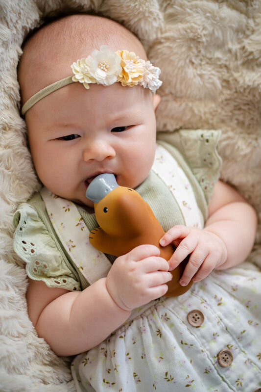 This iconic Aussie animal is sure to make a splash during a baby's playtime. The design features a little bell that rattles inside to delight, and its lovely bill provides a soothing place to relieve teething gums.