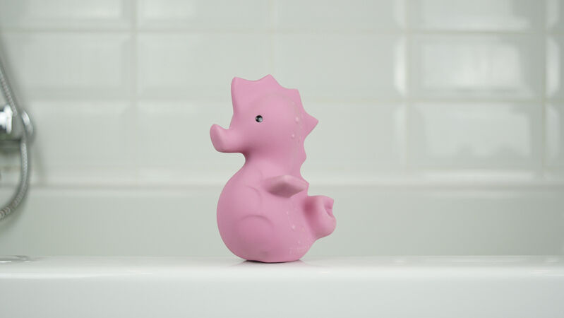 A sweet little sea horse ready for bathtime.