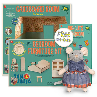 Sam & Julia Master Bedroom Play Bundle: Cardboard Room, Furniture Pack, Die-Cut Pack & Sam's Mum Plush Toy for Creative Imaginative Adventures