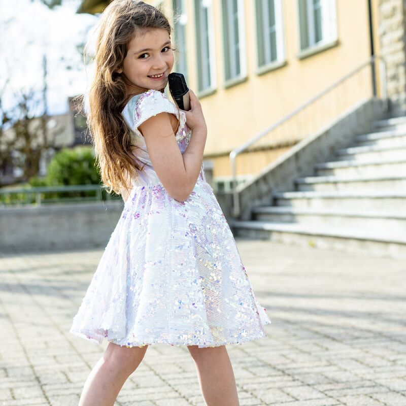 The Sequins Concert Dress brings colour and shine to any occasion. Its lightweight lining keeps the dress comfortable, while the sequinned outer layer catches the light during movement. Whether worn for parties, concerts or playful at‑home performances, this dress helps children step into character and enjoy expressive play.