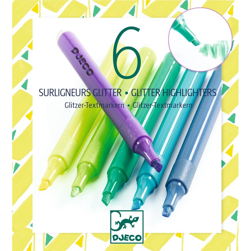 Enquire about this productA set of six glitter highlighters in cool colours for highlighting and decorating. Designed to add sparkle while keeping text clear, suitable from age 6.