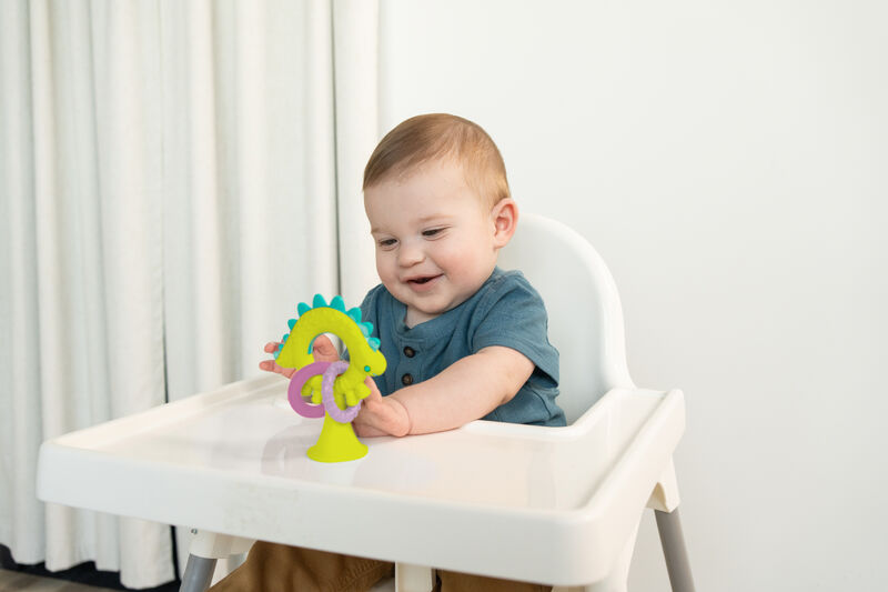 Stick‑a‑saurus brings a friendly dinosaur design to high-chairs, tiles and other smooth surfaces.With its vibrant colours and textured rings it adds a fun, flexible element to imaginative play at home or on the go. Supplied as six units per CDU.
